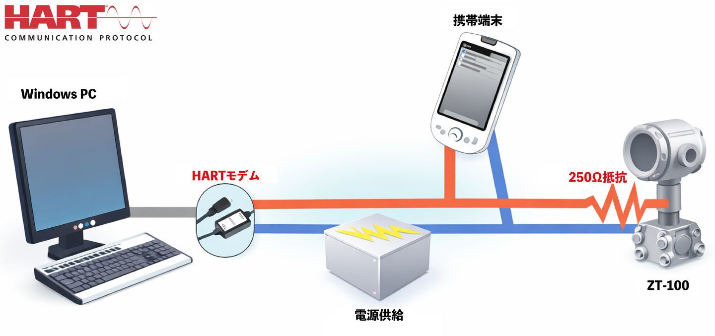 ■ HARTプロトコル(Rev.6)に準拠したZT-100は、4-20mAアナログ信号に加え、デジタル通信HART接続機能を提供