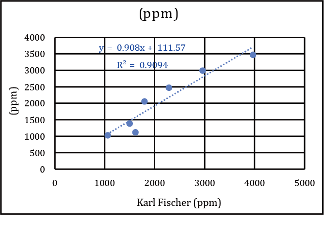 カールフィッシャーによる絶対水分量と、静電容量式などのデジタル水分計の相関性を高める検証考察は、油の状態監視において非常に高度で標準的な手法となります。温度補正とダンピングファクターの適用により検量線がリニアに反映されます。
